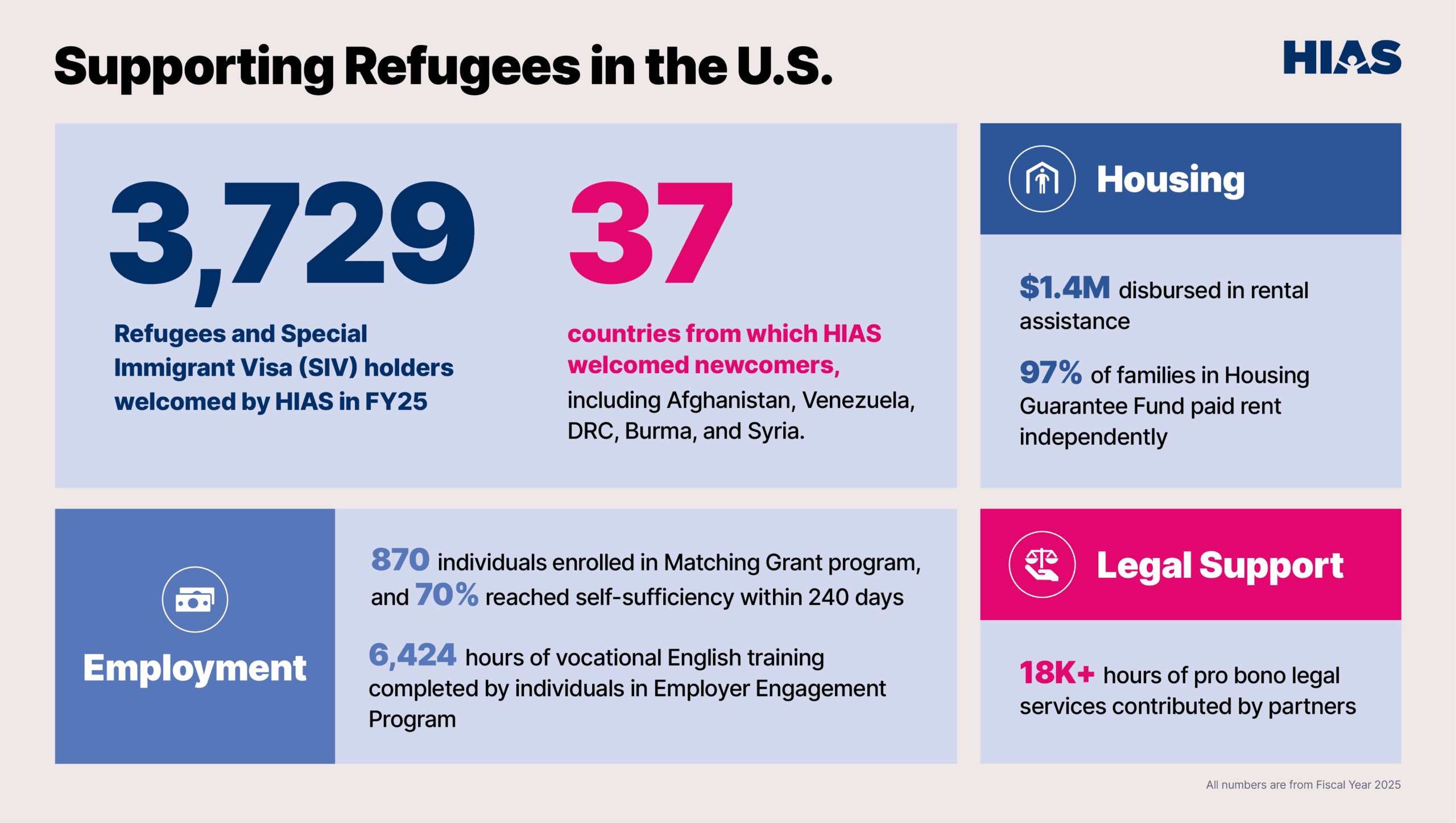 HIAS provides initial resettlement support for refugees and SIV holders through a national network of local partner organizations. In FY25, HIAS worked with 29 local affiliates across the country to provide comprehensive, trauma-informed services.
