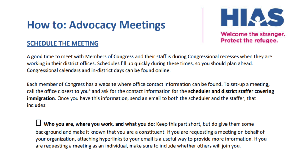 HIAS’ advocacy work in the United States and around the world is guided by over a century of expertise in assisting forcibly displaced people. We advocate for the rights of refugees, asylum seekers, and other forcibly displaced people, regardless of their national, ethnic, or religious backgrounds. HIAS works to protect and advance fair and humane refugee and asylum policies.